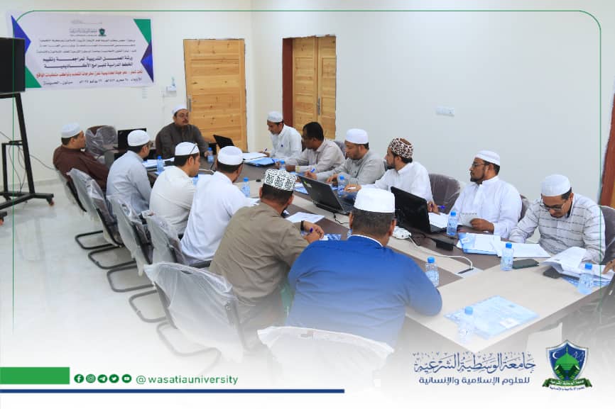 نيابة الشؤون الأكاديمية بجامعة الوسطية الشرعية تنظم ورشة عمل تدريبية لمراجعة وتقييم الخطط الدراسية للبرامج الأكاديمية